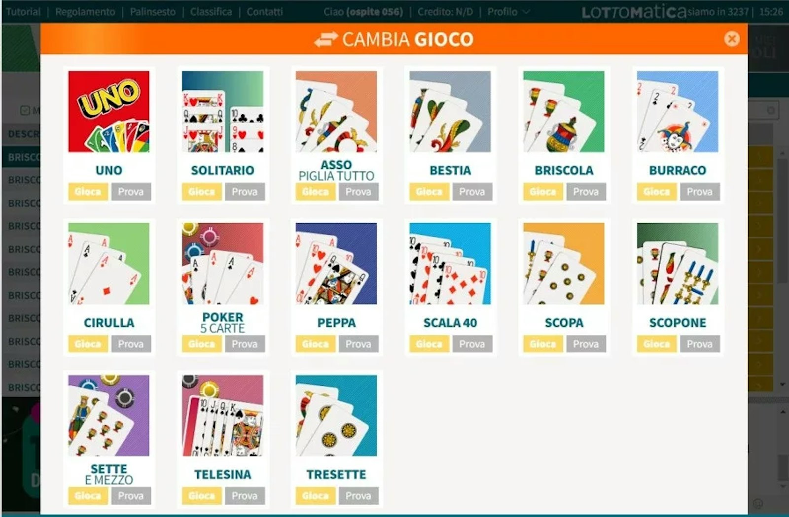 Altre sezioni disponibili su lottomatica